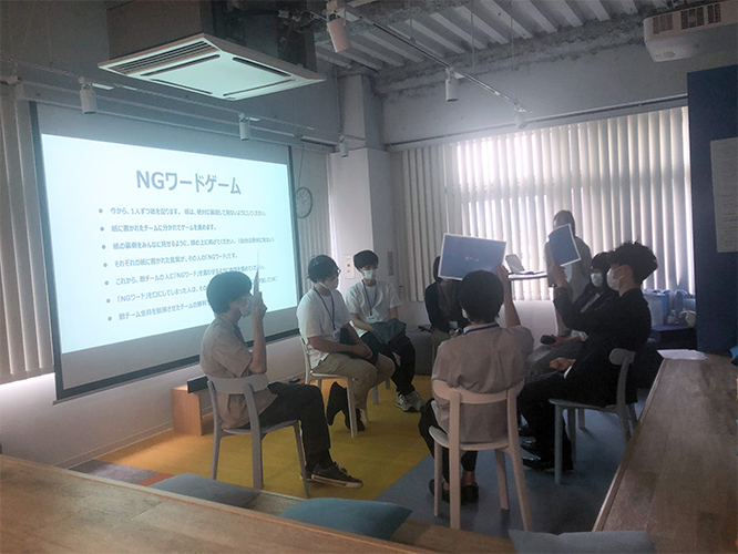 ぜひこの機会に仲を深めてもらおうと、「NGワードゲーム」を用意し、内定式の開会前にみんなでやってみました。