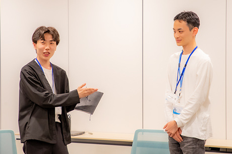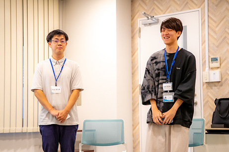 そんなメンターと内定者が初めてコラボレーションできるのも、内定式の醍醐味の一つ。今回はお互いの自己紹介を踏まえて、みんなの前で相手のことを紹介し合う「他己紹介」のワークにチャレンジしました。その後の発表では、1組3分程度の発表では語りつくせないほど、相手の長所をたくさん発見していました。